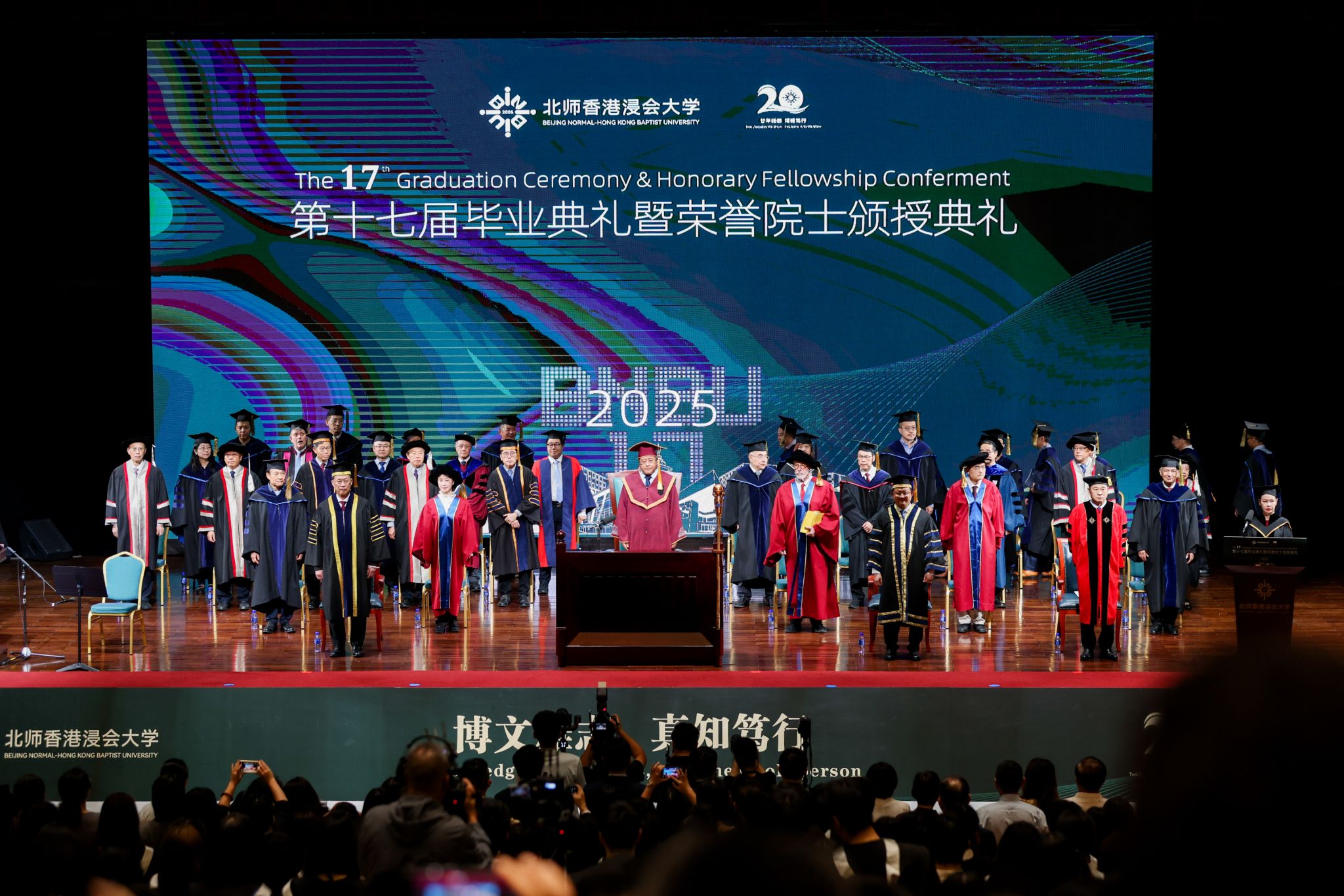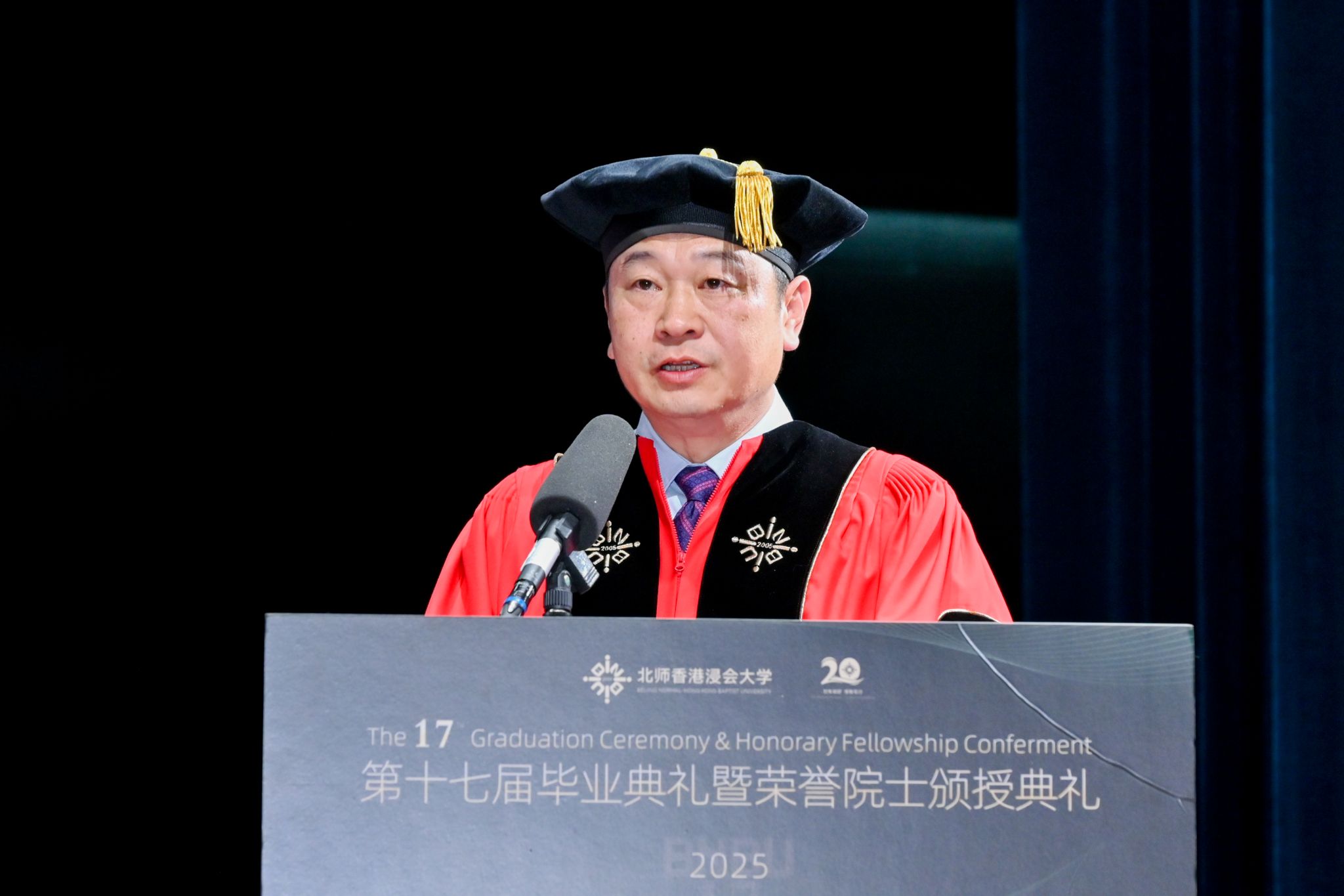 The conferment ceremony was chaired by Dr Wang Shoujun, Chairman of the BNBU Council and Executive Vice President of Beijing Normal University. Dr the Hon Kennedy Wong Ying-ho, Chairman of the Council and the Court of Hong Kong Baptist University (HKBU), and HKBU President Prof Alexander Wai also attended the ceremony.