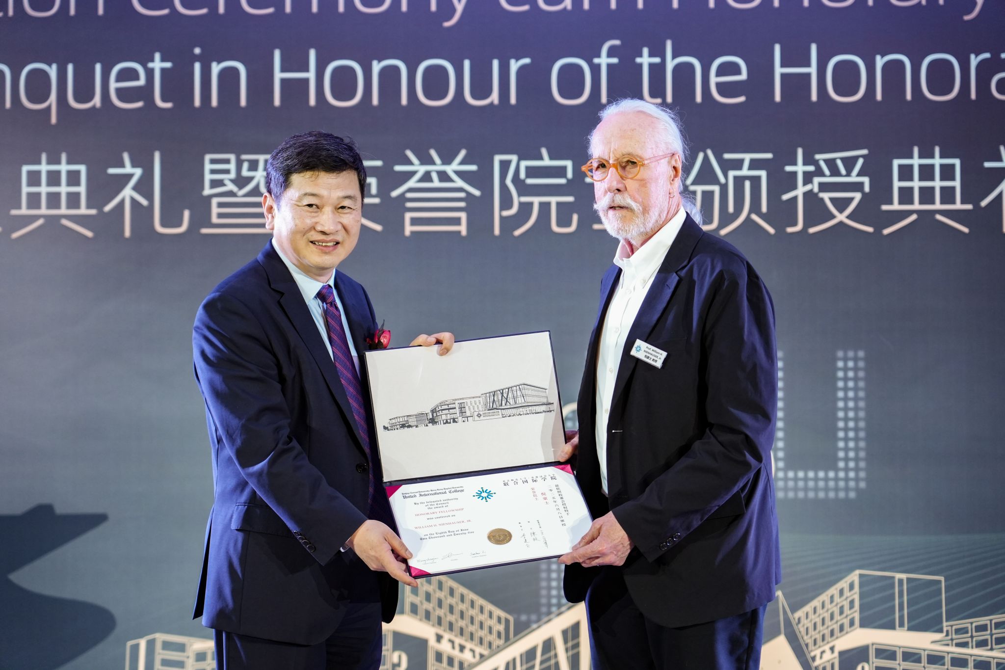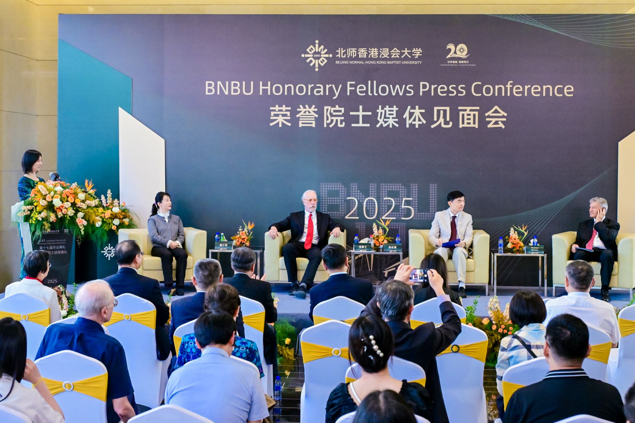 BNBU conferred honorary fellowships on five distinguished individuals in science, education, and culture on 8 June 2025. The recipients include: Nobel Laureate in Economics and Member of the US National Academy of Sciences, Prof Robert John Aumann; Member of the Chinese Academy of Sciences and the Chairman of the Chinese Society for Probability and Statistics, Prof Chen Songxi; American Sinologist and Emeritus Professor from the University of Wisconsin-Madison, Prof William H. Nienhauser, Jr.; National Advanced Individual in Poverty Alleviation, and Founder of the Adream Foundation, Ms Pan Jiangxue; and Founder of SML Group and Founding President of Jao Tsung-I Petite Ecole Fan Club, Dr Simon Siu Man Suen.
