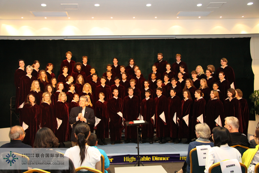 Augsburg College is one of the key strategic partners from Minnesota Private College Council that UIC has established close cooperation. During his last visit to UIC, Prof. Paul C. Pribbenow, President of Augsburg College, promised to bring more Augsburg students to UIC, and he did it with a surprise. Mr. Patrick Quade said: "Our hope is to work toward the day when UIC can send a choir to the campus of Augsburg College in the USA...This grand evening will have all of us singing in international harmony for a long time to come!"
